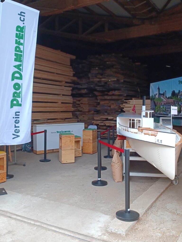 Heute Freitag Nachmittag hat das Modellbauteam das Dampfschiffmodell für die Tage des Schweizer Holzes am 13. und 14. September bei der Konrad Keller AG eingerichtet.